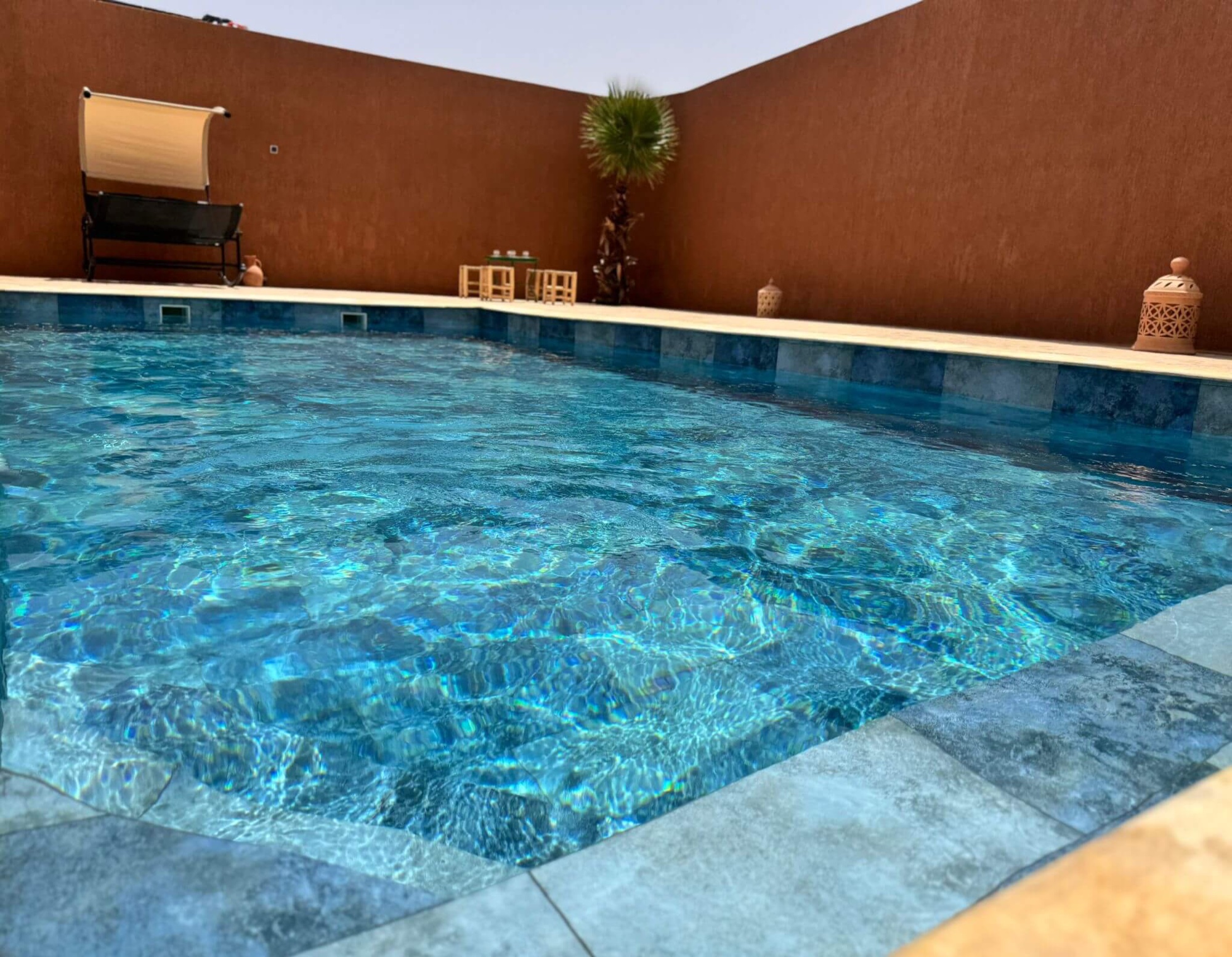 8 × 4 mètres Eau chauffée Profondeur progressive 100% privatif Lits de bronzage